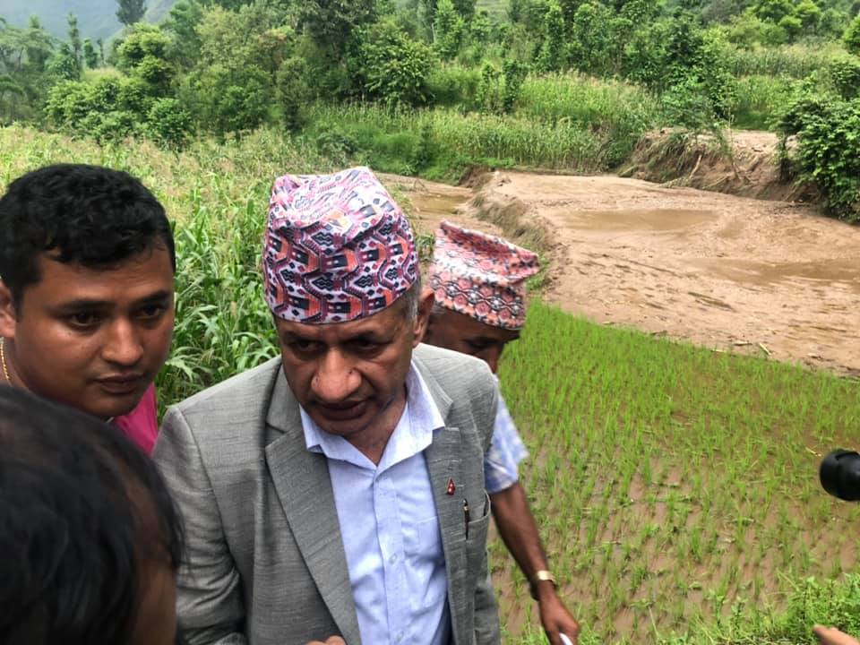 पहिरोका कारण जिल्ला नै शोमा डुबेपछि परराष्ट्रमन्त्री मन्त्री कुमार ज्ञवाली नेपाली सेनाको हेलिकोप्टरमा मंगलबार सँझ गुल्मी अाएका छन । गृह मन्त्रालयको विपद् व्यवस्थापन महाशाखा प्रमुख ईन्दु घिमिरे र डाक्टरसहितको टोली लिएर मंगलवार बेलुकी ६ बजे नेपाली सेनाको हेलिकप्टरमार्फत प्रभावित क्षेत्रमा ज्ञवाली पुगेका हुन । मन्त्री ज्ञवालीले पहिरो प्रभावित क्षेत्रमा पुगेर घटनाको निरीक्षण गरी घटनाको जानकारी समेत लिएका छन ।