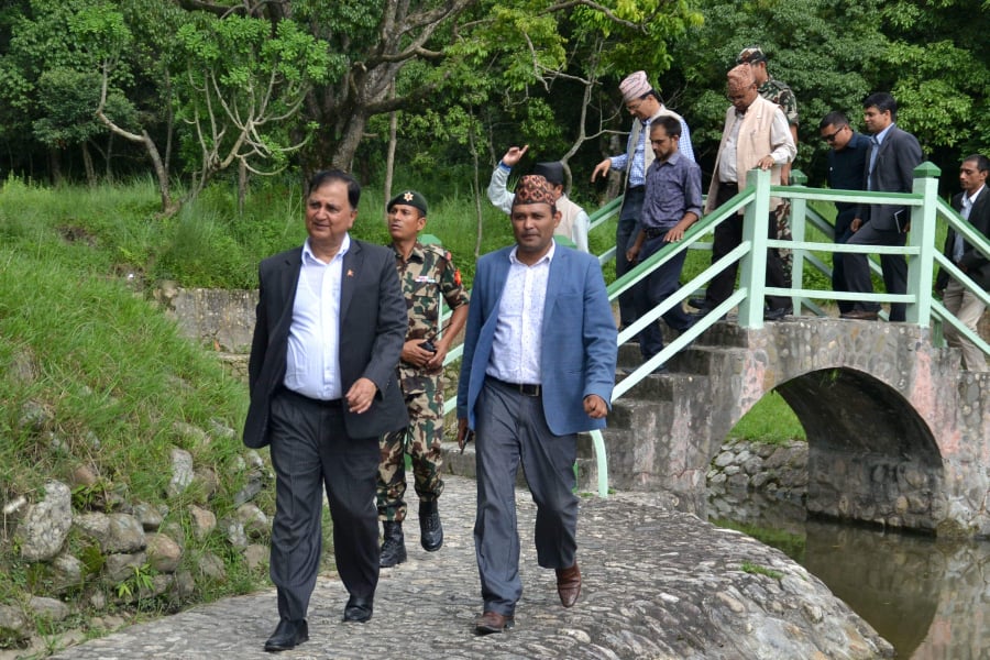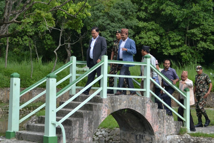 ११ साउन, काठमाडाैँ । गोकर्णस्थित नेपाल ट्रष्टको कार्यालयका कारण स्थानीयवासी र बस्तीमा परेका समस्या दुई साताभित्र समाधान गरिने भएको छ। ट्रष्टको अध्यक्षसमेत रहेका उपप्रधानमन्त्री तथा रक्षामन्त्री ईश्वर पोखरेलले शनिबार गोकर्णेश्वर नगरपालिका वडा नं ४ क्षेत्रमा पर्ने जग्गाको स्थलगत अनुगमन गर्नु भई केही दिनमै समस्या समाधानका लागि पहल गर्ने प्रतिवद्धता व्यक्त गर्नुभएको हो ।