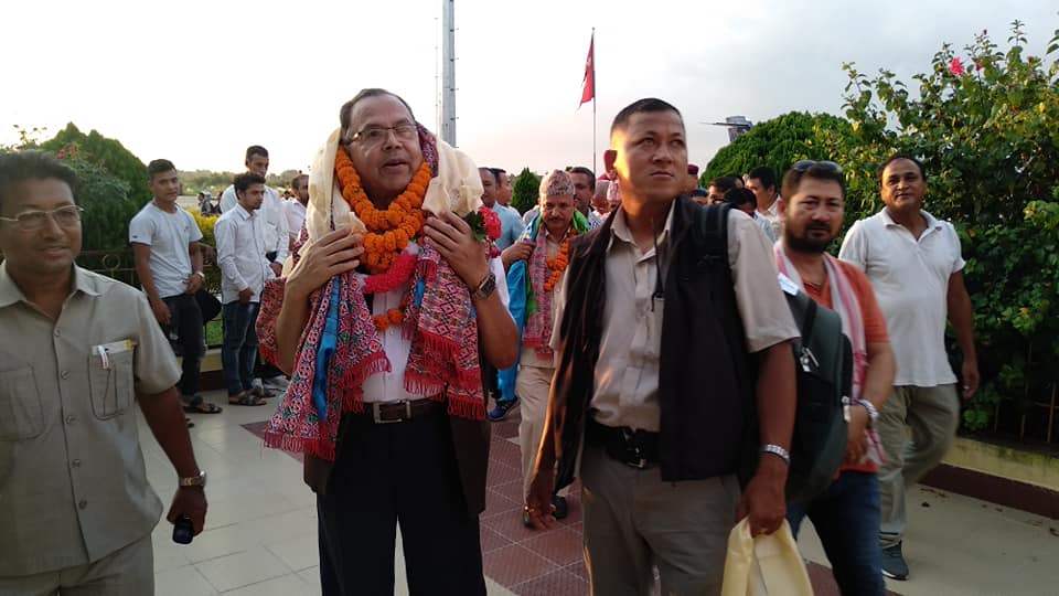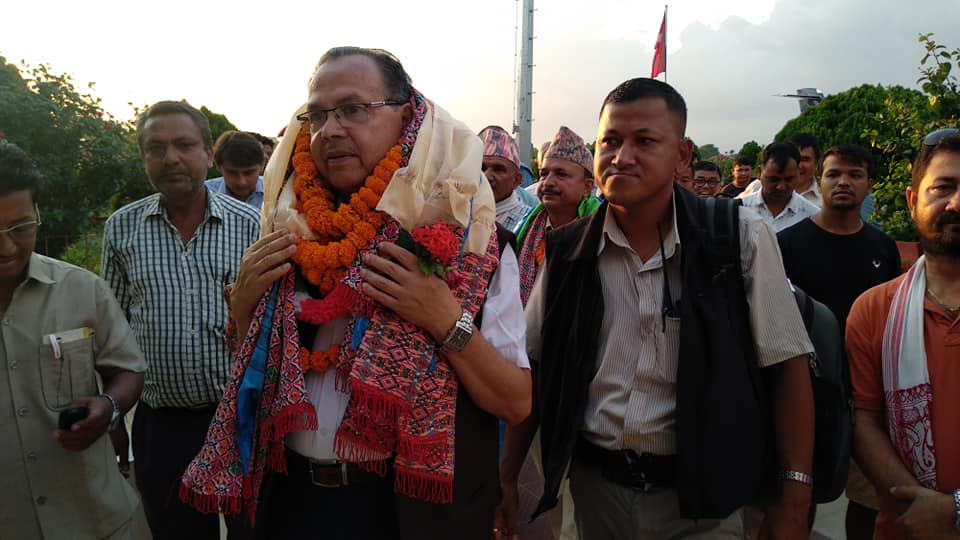 नेकपाको मर्यादाक्रम मिलेपछि पहिलो पटक झापा पूगेका झलनाथ खनालको भव्य स्वागत (भिडियोसहित)