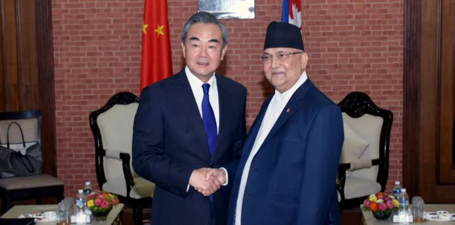 प्रधानमन्त्री ओली र चिनियाँ विदेशमन्त्री यीबीच बालुवाटारमा भेटवार्ता