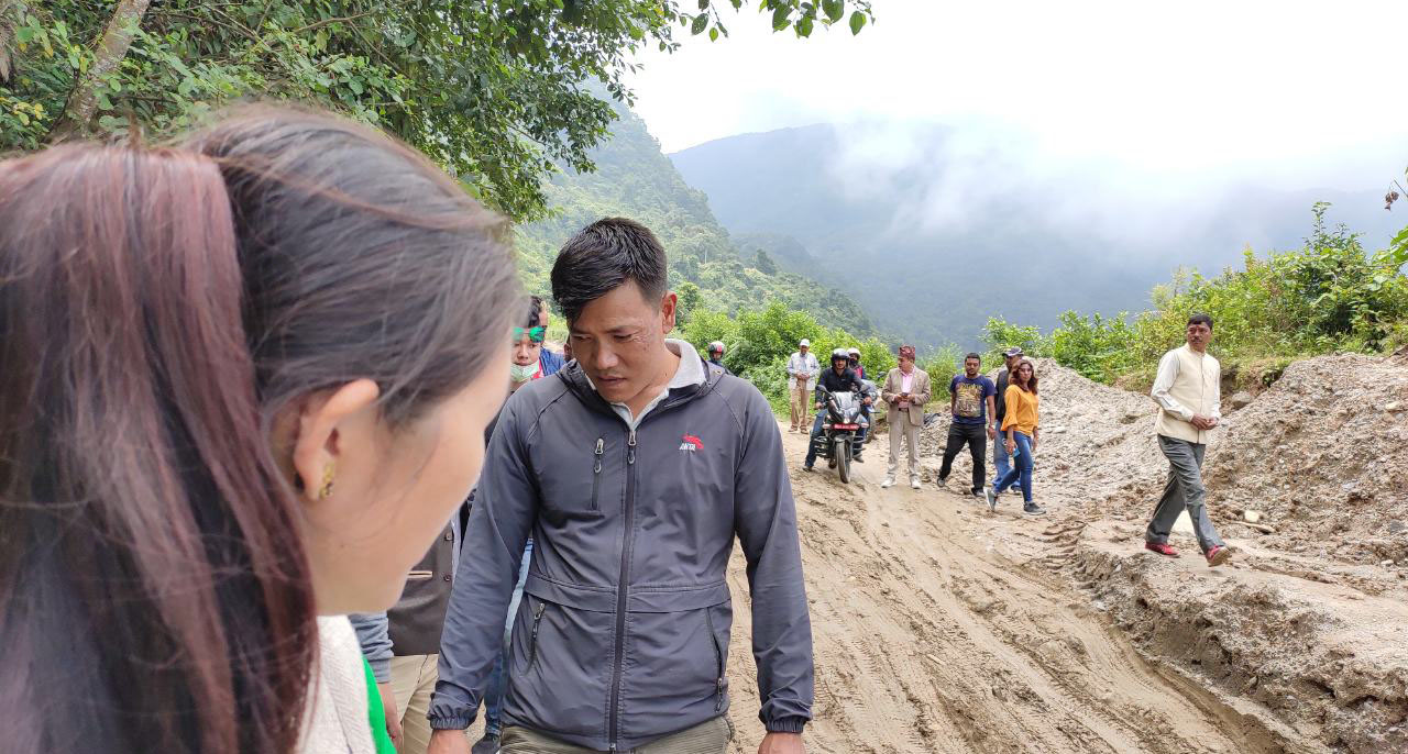 बिहीबार बिहान १० बजेदेखि नै सडकमा बसेर नेकपाका नेताहरू हितबहादुर तामाङ, राधिका तामाङ, बद्री मैनालीले ग्राभेल हालेर सडकमा गाडी गुड्न लायक बनाएका छन । दशैँको समयमा समेत बाटो मर्मतका लागि ठेकेदारले खासै चासो नदिएपछि उनीहरूले सडकका प्रमुखलाइ समेत त्यहीँ बोलाएर हिलो सोर्न लगाए ग्राभेल हाल्न लगाएका हुन । यसअघि गाडी हिडाउँनै समस्या रहेको सडकमा अब गाडी गुड्ने भएको सोही क्षेत्रका प्रदेश सांसद समेत रहेका नेकपाका नेता बद्री मैनालीले जानकारी दिए ।