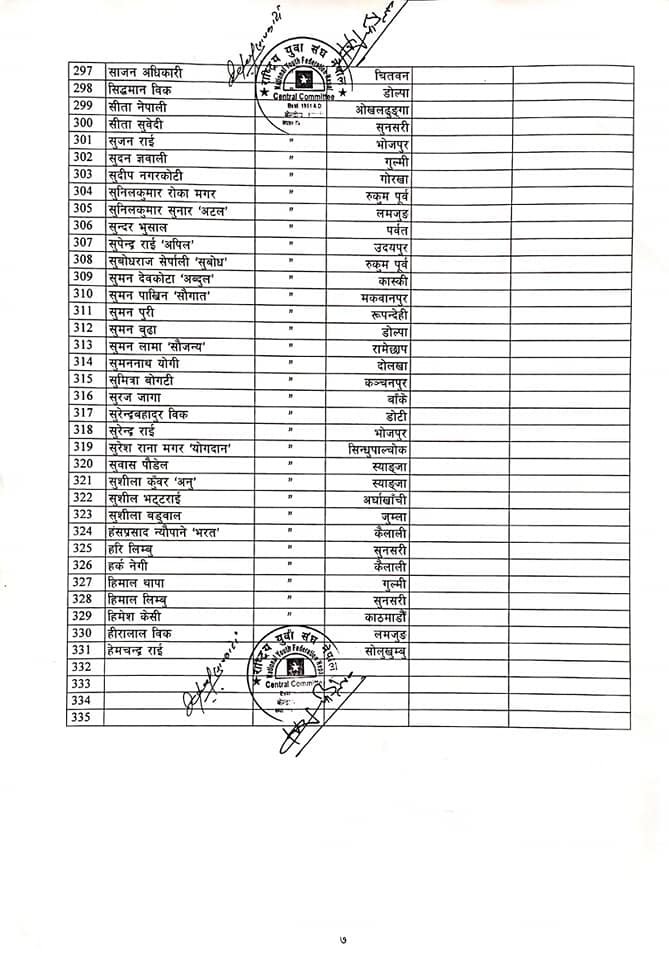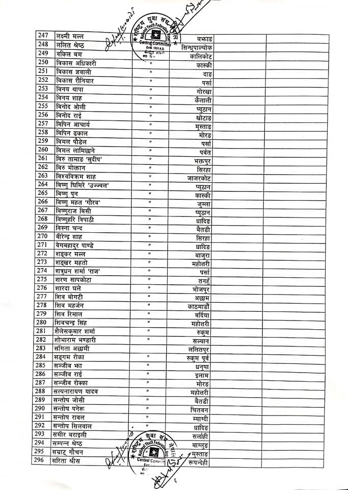 युवा संघले पायो पूर्णता, ३३१ जनाले पाए केन्द्रीय सदस्यको जिम्मेवारी (सूचीसहित)