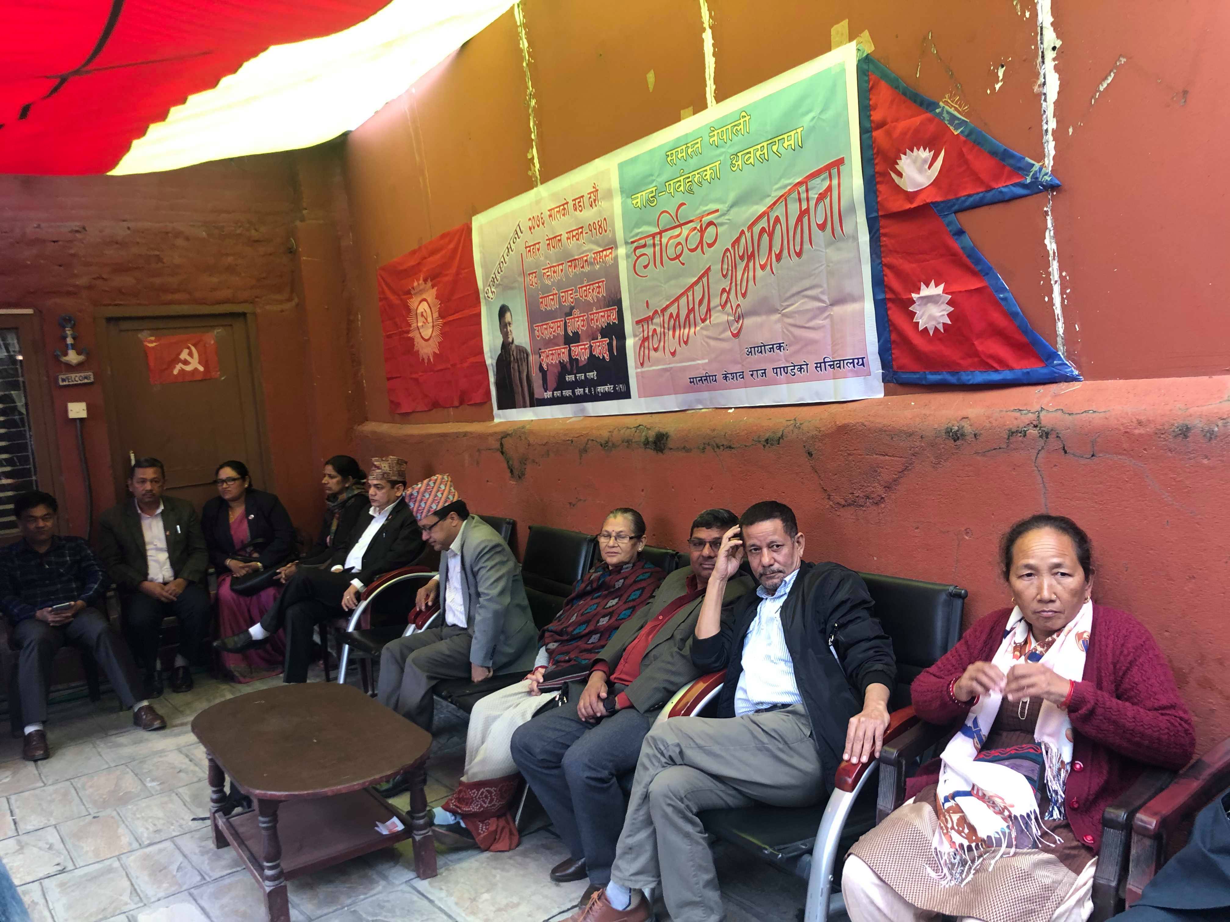 ८ कात्तिक, काठमाडौँ । नेपाल कम्युनिष्ट पार्टी प्रदेश नंवर ३ का सांसद केशवराज पाण्डेले आयोजना गरेको सबै चाडको शुभकामना तथा चियापान कार्यक्रम ज्यादै प्रभावकारी भएको छ । शुक्रबार काठमाडौँको गोंगबुमा पाण्डेको सम्पर्क सचिवालयमा आयोजित चियापान कार्यक्रम उपस्थित सबै पार्टीका नेताहरूले प्रदेशको स्थायी राजधानी तोकेर निकास दिनुपर्ने देखि नुवाकोटको विकासका बारेमा रचनात्मक सल्लाह, सुझाव र प्रतिवद्भताहरू व्यक्त गरेका छन ।