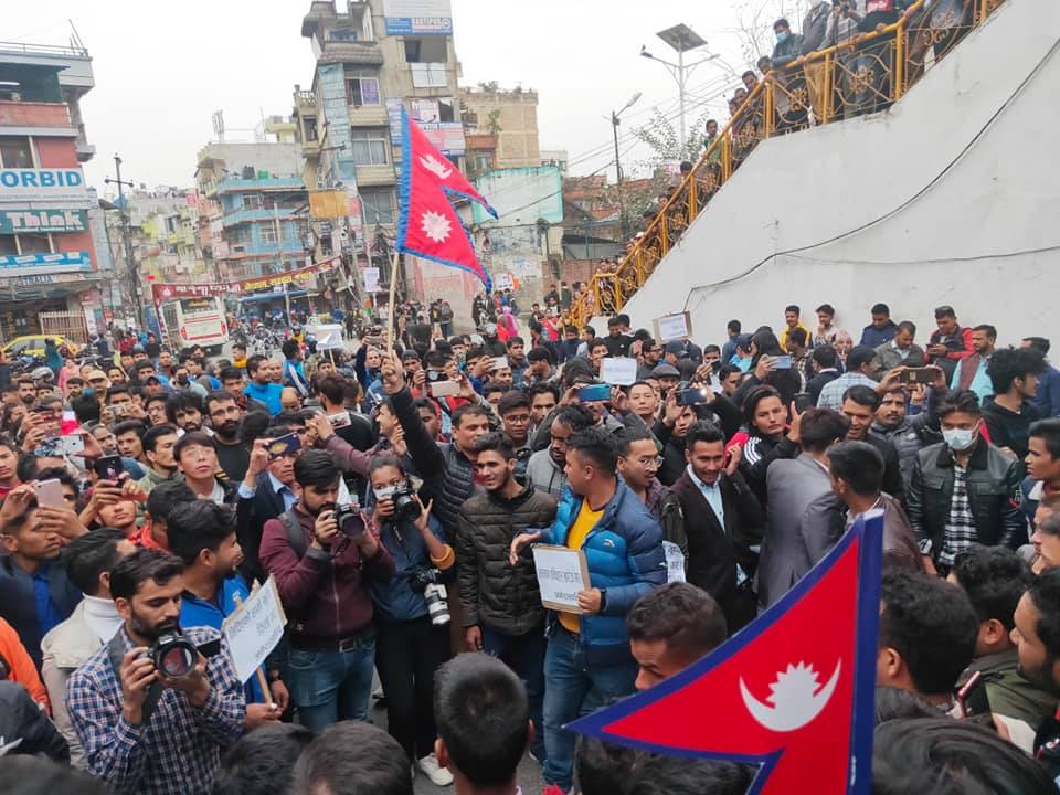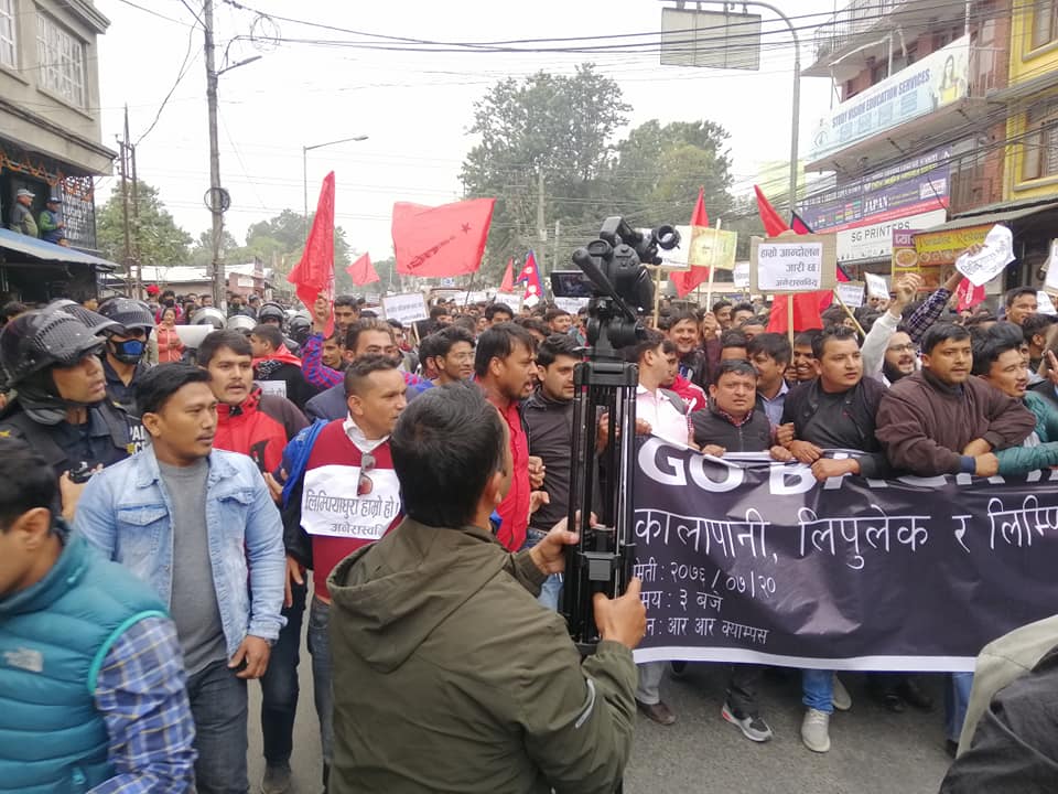 २० कात्तिक, काठमाडौँ । अनेरास्ववियुका संयोजक ऐन महरले नेपालको भूमि जोगाउन रगतको खोला बगाउन तयार रहेको बताएका छन । भारतले सार्वजनिक गरेको नयाँ नक्सामा कालापानी लिम्पियाधुरा लगायतका भूमि भारतले आफ्नो नयाँ नक्सामा समेटेपछि काठमाडौँमा प्रदर्शन गर्दै संयोजक महरले कुटनीतिक पहल गरेर भारतको निर्णय सच्याउन सरकारको ध्यानाकर्षण गराए ।
