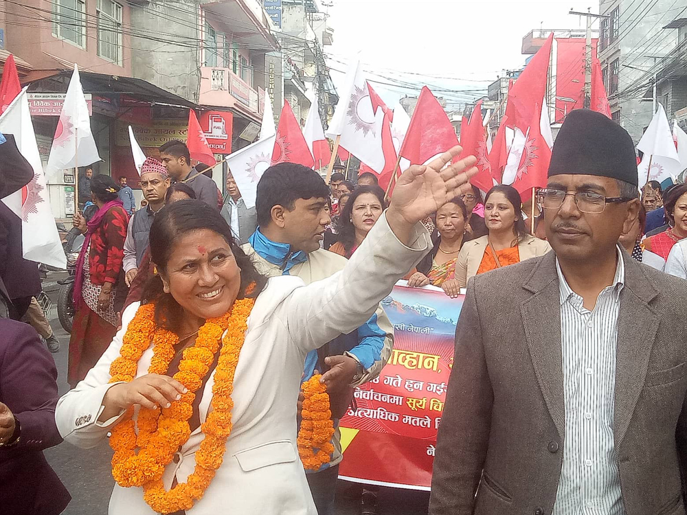 २७ कात्तिक, पोखरा । नेपाल कम्युनिस्ट पार्टी (नेकपा)ले नेकपाका उम्मेदवारलाई मत दिएर विजयी गराउन आग्रह गरेको छ । पोखरा ९ का मतदातामाझ नेकपा नेता एवं उम्मेदवारहरुले जनताको आँसु पुछ्ने, दुखसुखको पार्टी नेकपामात्रै भएको दाबी गरे । चुनावी अभियानका क्रममा वडाका विभिन्न ठाउँमा बुधबार उम्मेदवार विद्या भट्टराई पुगिन् । नेकपाले उपनिर्वाचन हुने कास्कीको पोखरा महानगरका ११ वटै वडामा विभिन्न कार्यक्रम गरिरहेको छ । विद्यालाई ९४ वर्षीया बालकुमारी पराजुलीले विजयको शुभकामदा दिइन् ।