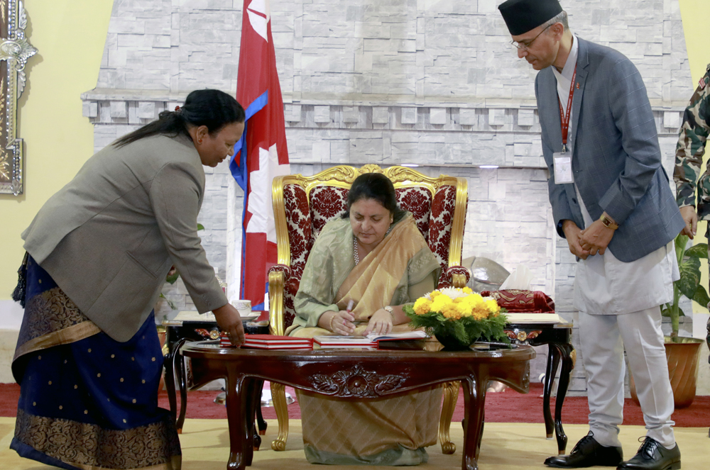 राष्ट्रपति भण्डारी समक्ष दुई प्रतिवेदन पेश