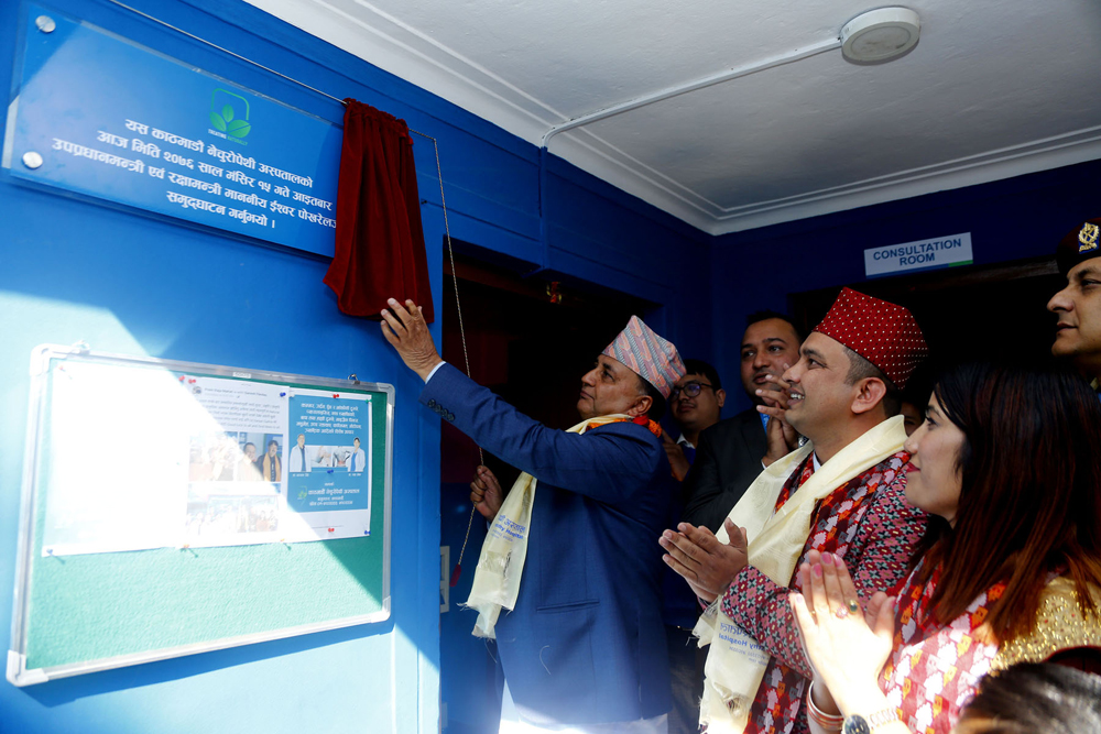 उपप्रधान तथा रक्षामन्त्री ईश्वर पोखरेल आइतबार काठमाडौँ नेचुरोपेथी अस्पतालको उदघाटन गर्दै । तस्वीरः रोशन सापकोटा