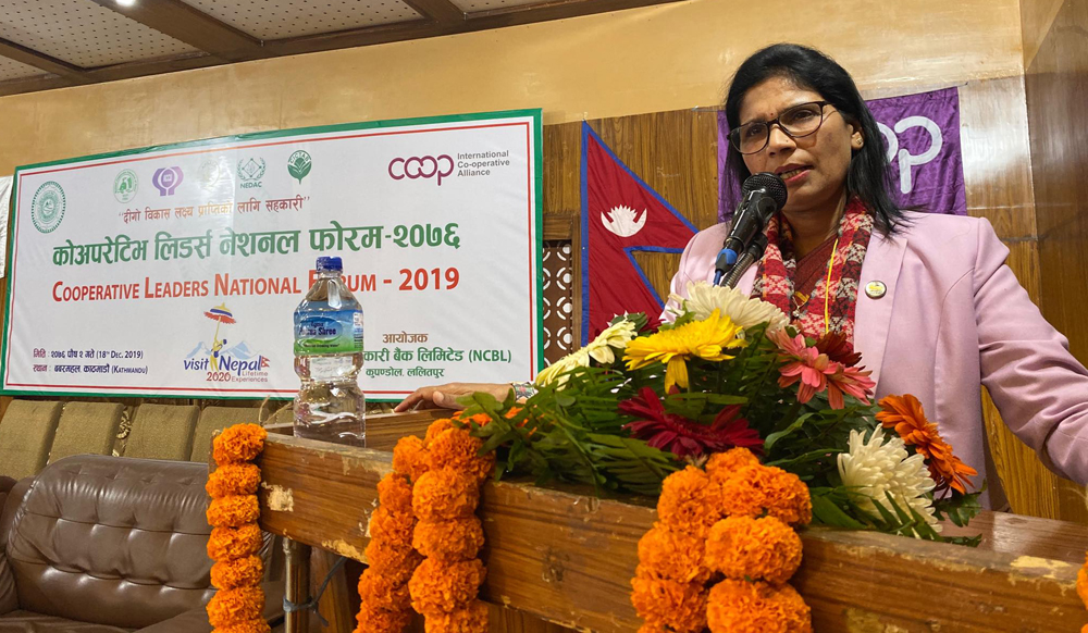 २ पुस, काठमाडौँ । भूमि व्यवस्था, सहकारी तथा गरिबी निवारण मन्त्री पद्माकुमारी अर्यालले सहकारी क्षेत्रलाई एकीकृत ढंगले उत्पादन क्षेत्रमा लगानी गरी समाजबादको सारथी बन्न आग्रह गर्नुभएको छ । संघीय राजधानी काठमाडौंमा आज बुधवार राष्ट्रिय सहकारी बैंकको आयोजनामा भईरहेको ‘कोअपरेटिभ लिडर्स नेशनल फोरम २०७६’ कार्यक्रममा बोल्दै देशको समृद्धिका लागि मुलुकभर छरिएर रहेका सहकारीहरुले एकीकृत र व्यवसायिक ढंगले उत्पादनमूलक क्षेत्रमा लगानी गर्नुपर्ने कुरामा जोड दिनुभएको हो ।