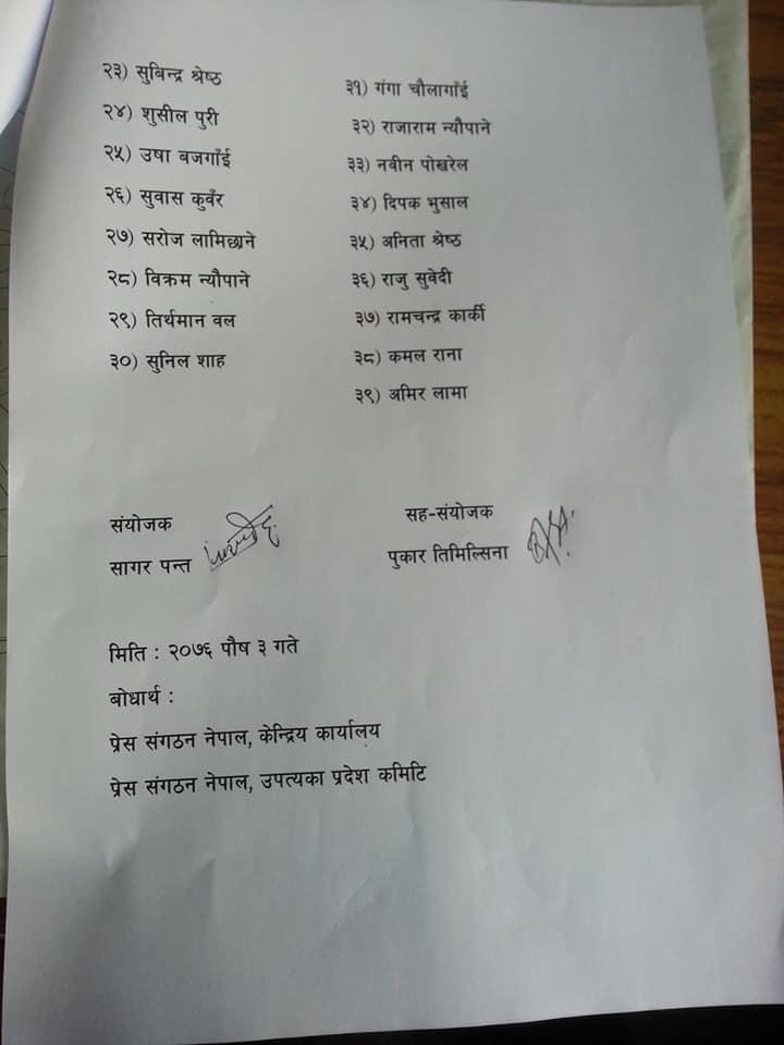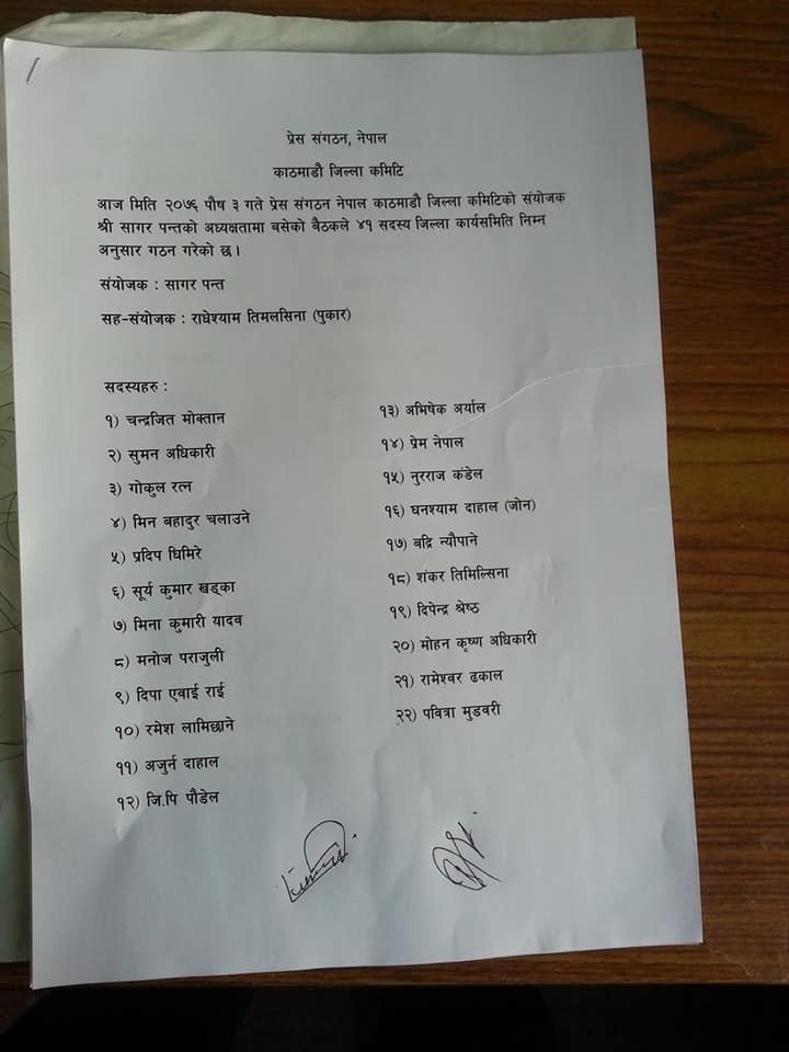 प्रेस संगठन काठमाडौँले पायो पुर्णता (नामावलीसहित)