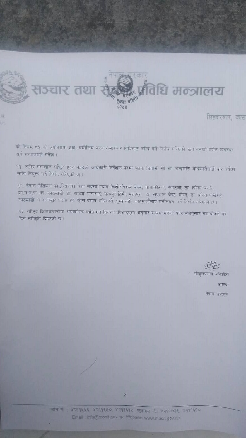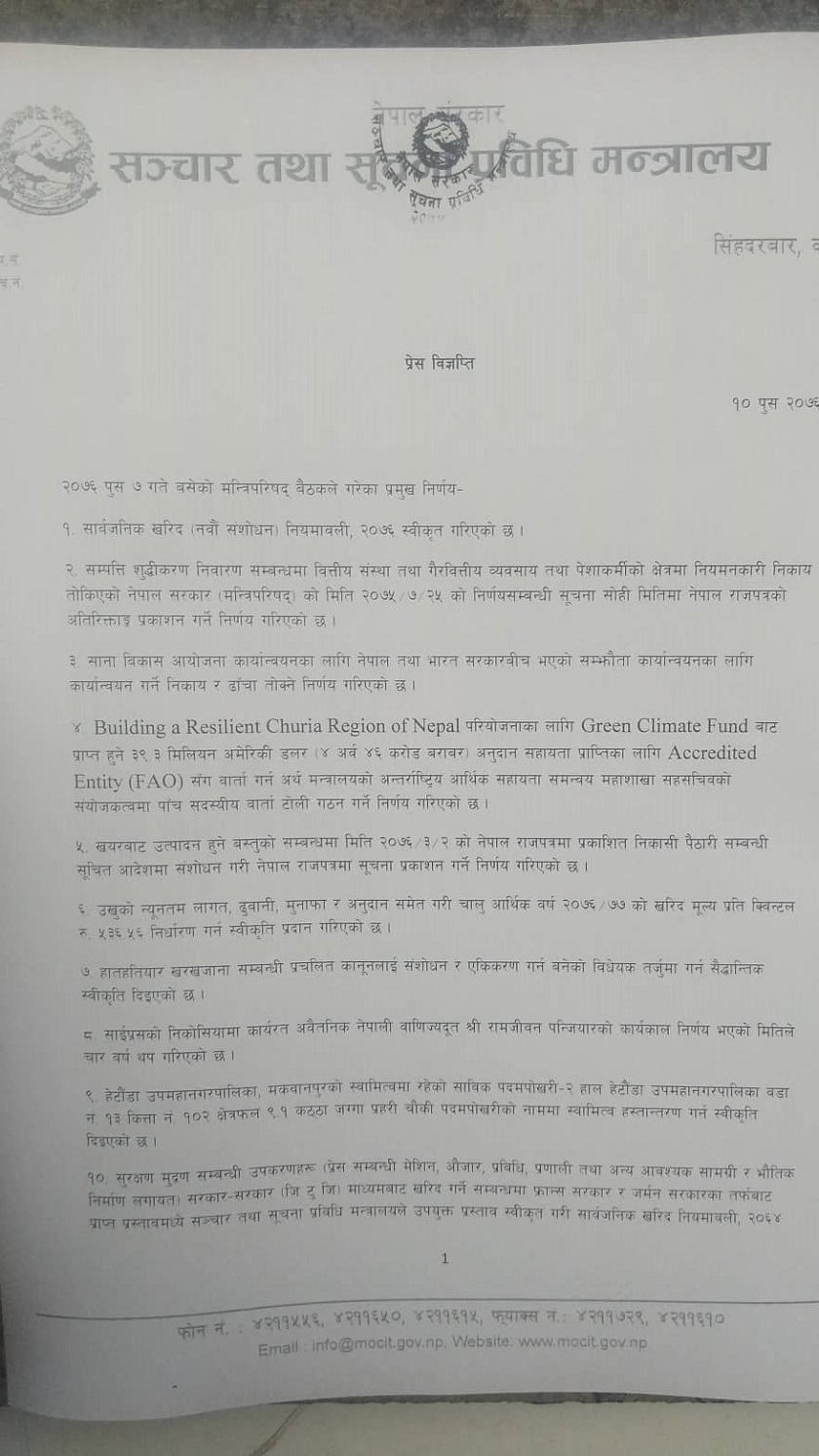 मन्त्रिपरिषद् बैठकका यस्ता छन् १३ निर्णय