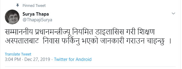मिर्गौलाको डायलाइसिस गरेर प्रधानमन्त्री ओली निवास फर्किए
