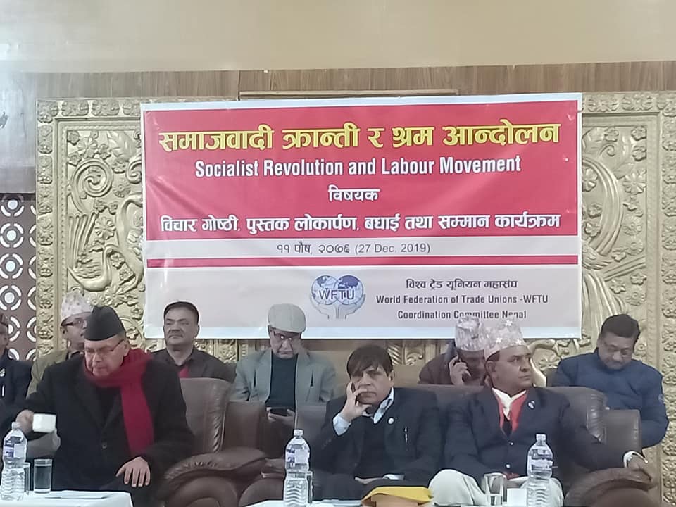 १२ पाैष, काठमाडाैँ । पूर्वप्रधानमन्त्री तथा नेकपाका नेता झलनाथ खनालले समाजवादी क्रान्तिको लक्ष्य समाजवाद रहेको बताउनुभएको छ । विश्व ट्रेड युनियन महासङ्घले यहाँ आयोजना गरेको ‘समाजवादी क्रान्ति र श्रम आन्दोलन’ विषयक विचार गोष्ठी पुस्तक लोकार्पण, बधाई तथा सम्मान कार्यक्रममा पूर्वप्रधानमन्त्री खनालले समाजवादी क्रान्तिको लक्ष्य समाजवाद भएमा मात्र समाज समाजवादतर्फ जाने बताउनुभयो ।