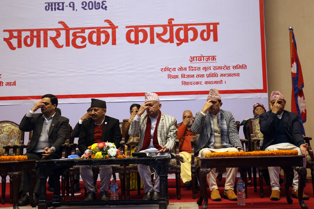 १ माघ, काठमाडौँ । परराष्ट्रमन्त्री प्रदीपकुमार ज्ञवालीले योगलाई जीवन अभिन्न अङ्ग बनाउनुपर्ने बताउनुभएको छ । राष्ट्रिय योग मूल समारोह समितिले आज यहाँ आयोजना गरेको राष्ट्रिय योग दिवस, मकर सङ्क्रान्ति मूल समारोह कार्यक्रममा उहाँले योगले मानिसको वास्तविक जीवनशैली अपनाउन सहयोग गर्ने बताउनुभयो ।