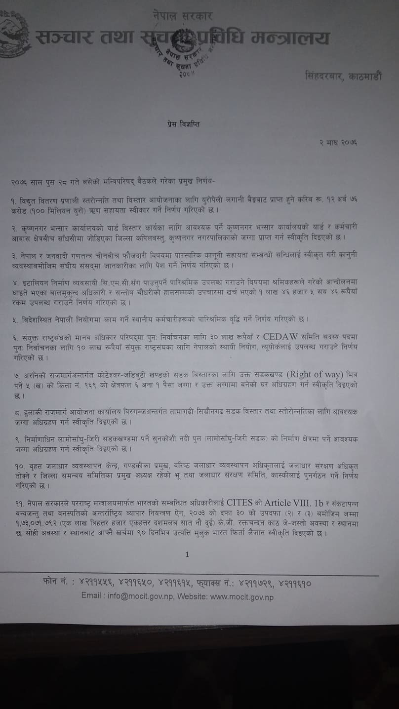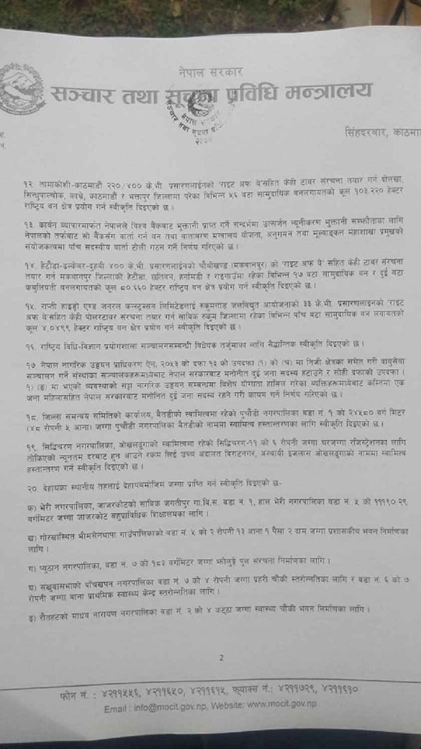 मन्त्रिपरिषद बैठकका यस्ता छन् २० निर्णय