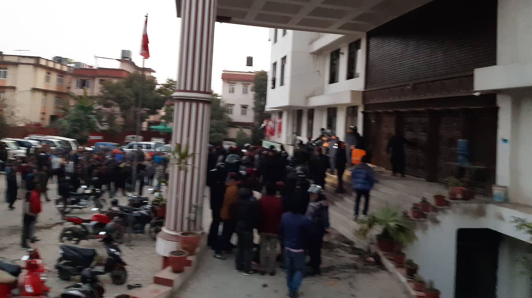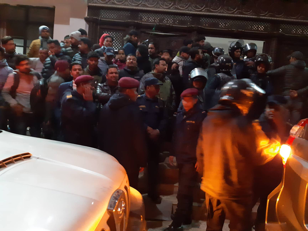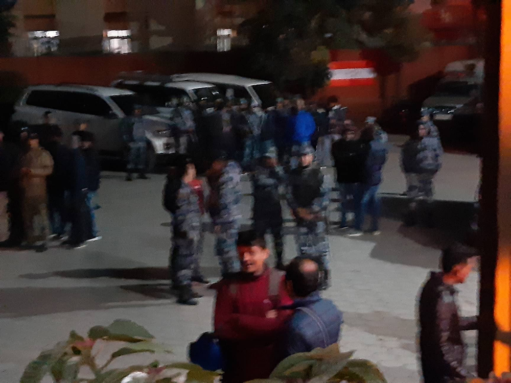 १३ माघ, काठमाडाैँ । नेपाली कांग्रेसका सभापति शेरबहादुर देउवाको सुरक्षाका लागि पार्टी केन्द्रीय कार्यालयमा कार्यकर्ताले कुस्ती खेलेका छन । सोमबार केन्द्रीय समितिको बैठकमा सहभागी हुन जानेक्रममा पार्टी कार्यालय परिसरमा कार्यकर्ताले कुस्ती खेलेका हुन । कुस्ती खेल्ने नेपाल विद्यार्थी संघ (नेविसंघ)का कार्यकर्ता हुन ।