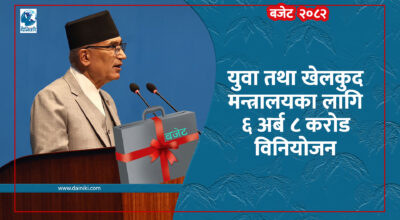 १५ जेठ, काठमाडौँ । सरकारले युवा तथा खेलकुद मन्त्रालयका लागि ६ अर्ब ८ करोड रुपैयाँ