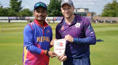 २५ जेठ, काठमाडौँ । आइसिसी विश्वकप लिग–२ अन्तर्गत त्रिकोणात्मक प्रतियोगिताको स्कटल्याण्डविरुद्धको खेलमा नेपालले टस हारेर