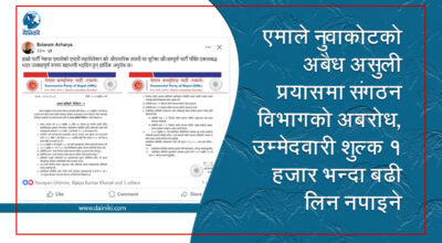 ९ मंसिर, नुवाकोट । नेकपा (एमाले) नुवाकोटले महाधिवेशन प्रतिनिधि छनोटका नाममा इच्छा जाहेर गर्नेबाट १०