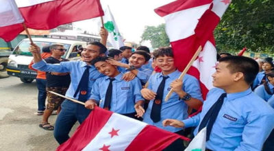 ८ असोज, काठमाडौँ । नेपाली कांग्रेसले पार्टीका नेता बालकृष्ण खाँडको स्वागतको नाममा विद्यालय पोशाकमा रहेका