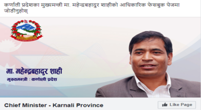 २५ भदौ, काठमाडौँ । कर्णाली प्रदेशका मुख्यमन्त्री महेन्द्रबहादुर शाहीको सामाजिक सञ्जाल फेसबुकप्रतिको मोह बढेको छ