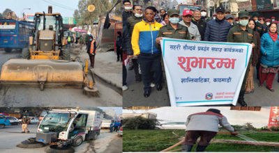 ८ मंसिर, काठमाडाैँ । काठमाडाैँ महानगरपालिकाका मेयर विद्यासुन्दर शाक्य शनिबार सहर सफा बनाउन डोजरसहित सडकमा