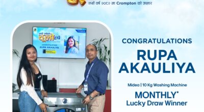 १९ जेठ, काठमाडाैं । सिजी इलेक्ट्रोनिकद्वारा सञ्चालन गरिएको ‘क्रम्पटन नयाँ वर्षको ठूलो हर्ष’नामक उपभोक्ता क्याम्पेनअन्तर्गतको