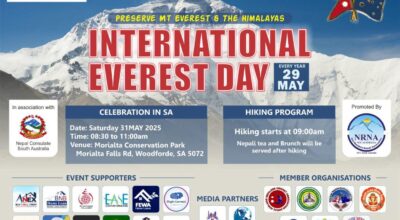 एडिलेड । एभरेष्ट डे २०२५ को सन्दर्भमा एडिलेडमा विविध कार्यक्रमको आयोजना गरेर मनाईने भएको छ