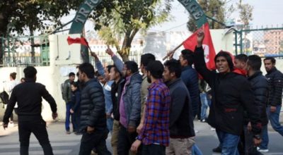 बिजय गच्छादारको बचाउमा सडकमा निस्किएको नेविसंघ गोकुल बाँस्कोटाविरूद्ध सडकमा