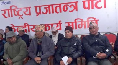 १९ माघ, काठमाडाैँ । राष्ट्रिय प्रजातन्त्र पार्टीको केन्द्रीय कार्य समितिको बैठकले महाधिवेशन आगामी जेठ २५