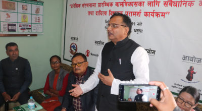 ११ मंसिर, धनुषा । मुख्यमन्त्री लालबाबु राउतले प्रारम्भिक बालविकासको प्रभावकारी कार्यान्वयनको लागि प्रदेशमा बाध्यकारी कानून