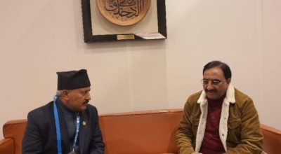 ३० कात्तिक, काठमाडौँ । उपप्रधानमन्त्री तथा रक्षामन्त्री ईश्वर पोखरेल युनाइटेड अरब इमिरेटस्का प्रधानमन्त्री तथा रक्षामन्त्री