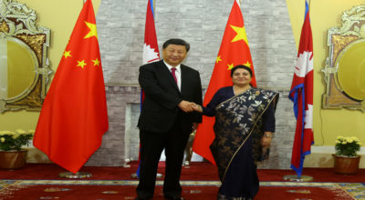२६ असोज, काठमाडाैँ । चिनियाँ राष्ट्रपति सी चिनफिङले समकक्षी राष्ट्रपति विद्यादेवी भण्डारीसँग द्धिपक्षीय भेटवार्तामा नेपालको