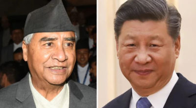 २५ असोज, काठमाडौँ । चिनियाँ राष्ट्रपति सी चिनपिङको पहिलो राजनीतिक भेट नेपाली कांग्रेसका सभापति शेरबहादुर