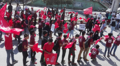 ३ असाेज, भक्तपुर । नेपाल मजदुर किसान पार्टीकाे ७ औँ महाधिवेशनकाे उद्घाटन सत्रकाे र्यालीमा भक्तपुर