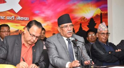 २९ भदाै, काठमाडाैँ । सत्तारुढ दल नेपाल कम्युनिस्ट पार्टी (नेकपा) का अध्यक्ष एवं पूर्व प्रधानमन्त्री पुष्पकमल
