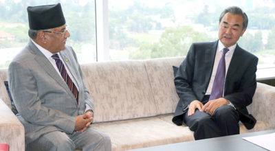 २३ भदौ, काठमाडौँ । नेपाल भ्रमणमा रहेका चिनियाँ विदेशमन्त्री वाङ यीले प्रधानमन्त्री केपी शर्मा ओलीसँग
