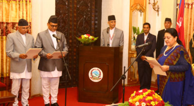१५ भदाै, काठमाडाैँ । बंगलादेश र कतारका लागि नवनियुक्त राजदूतले राष्ट्रपति भण्डारीबाट शपथ लिएका छन्