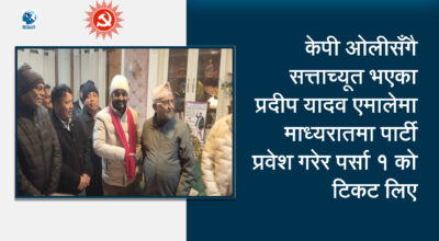 ५ माघ, काठमाडौँ । केपी शर्मा ओली सरकारका खानेपानी मन्त्री प्रदीप यादव एमाले प्रवेश गर्नुभएको
