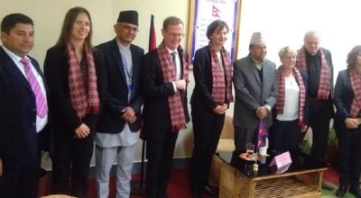 १९ फागुन, बुटवल । प्रदेश नम्बर ५ का मुख्यमन्त्री शंकर पोखरेलसँग जर्मनीका राजदूत रोल्याण्ड स्याफर सहितको टोलीले