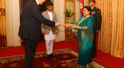 राष्ट्रपतिसमक्ष एक आवासीयसहित तीन गैरआवासीय राजदूतले आ–आफ्नो ओहोदाको प्रमाणपत्र पेश गरे