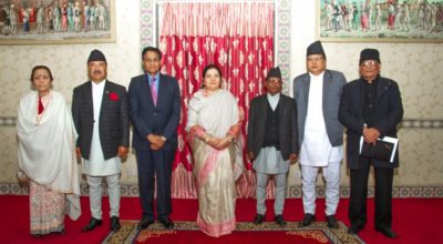 ८ फागुन, काठमाडौँ । राष्ट्रपति विद्यादेवी भण्डारीसँग प्रदेश नं १, प्रदेश नं २, प्रदेश नं ३,