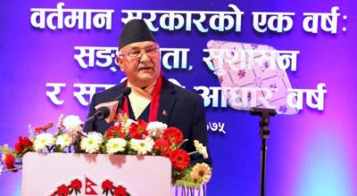 २ फागुन, काठमाडाैँ । बिहीबार देशवासीका नाममा सम्बोधन गर्दै प्रधानमन्त्री ओलीले आफ्नो एक वर्षे कार्यकालमा