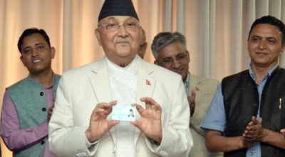 २४ असार, काठमाडौँ । प्रधानमन्त्री केपी शर्मा ओलीले राष्ट्रिय परिचयपत्र पाएका छन । मंगलबार उनले