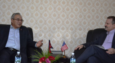 १ जेठ, काठमाडौँ । गृहमन्त्री रामबहादुर थापा र अमेरिकी विदेश मन्त्रालयका दक्षिण तथा मध्य एशिया