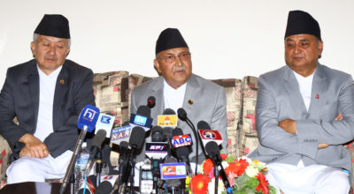 २ जेठ, काठमाडौँ । प्रधानमन्त्री निवास बालुवाटारमा सत्तारुढ नेपाल कम्युनिस्ट पार्टी (नेकपा)को सचिवालय बैठक जनवर्गीय