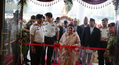 १० वैशाख, काठमाडौँ । राष्ट्रपति विद्यादेवी भण्डारीले नवनिर्मित जङ्गी अड्डा भवनको आज उद्घाटन गर्नुभएको छ
