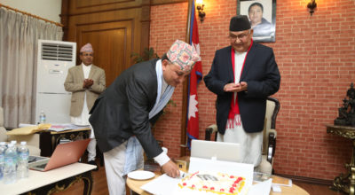 बालुवाटारमा मन्त्रिपरिषद् बैठकअघि यसरी मनाइयाे उपप्रधानमन्त्री पाेखरेलकाे जन्मदिन/