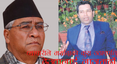 १४ चैत, काठमाडाैँ । नेपाली कांग्रेसका सभापति शेरबहादुर देउवालाई एक जना व्यापारिक पृष्ठभूमिका नेताले संसदीय