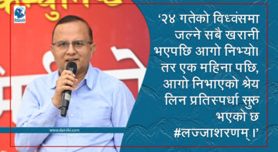 १ कात्तिक, काठमाडाैँ । आगो निभाएको श्रेय लिन प्रतिस्पर्धा चलिरहँदा एमालेको तर्फबाट महासचिव शंकर पोखरेलले