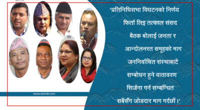 २८ भदौ, काठमाडौँ । विघटित प्रतिनिधिसभाका ८ वटा राजनीतिक दलहरूले प्रतिनिधिसभा विघटनलाई असंवैधानिक भनेका छन्